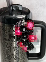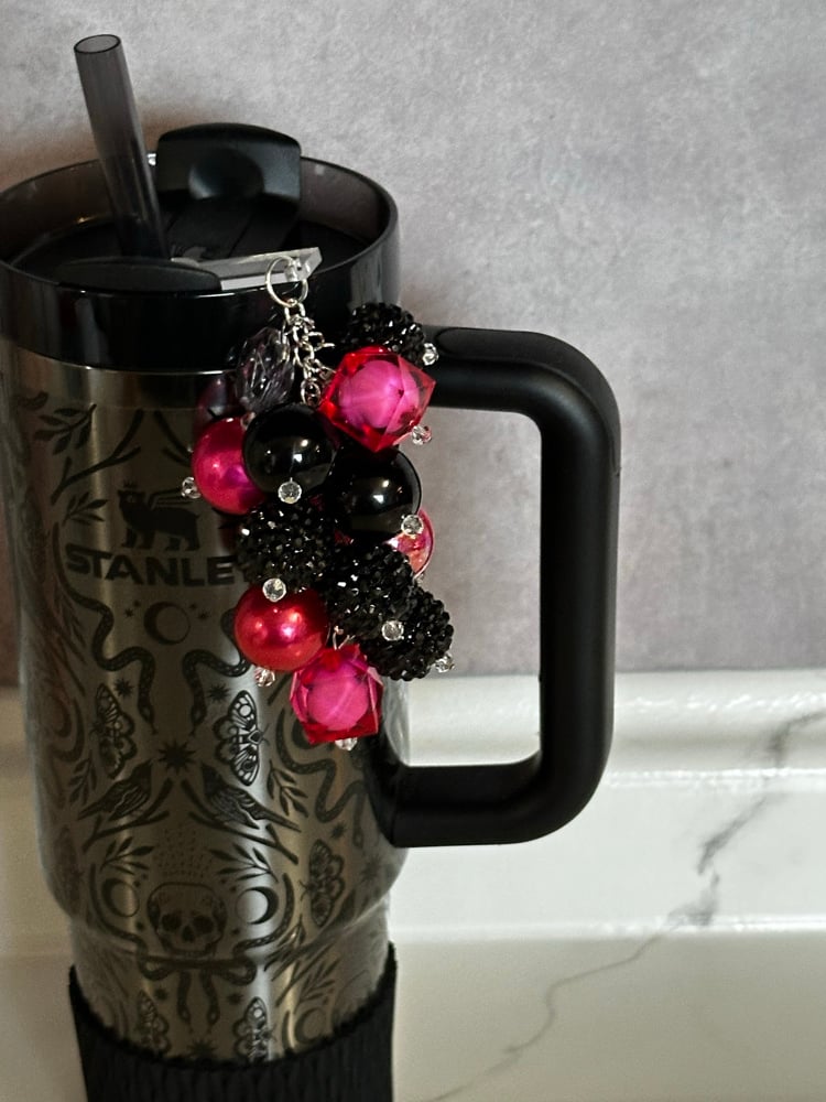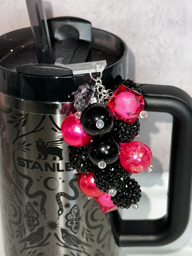 Add a pop of glam to your tumbler with this black and pink straw bauble. Designed with a mix of glossy, faceted, and metallic beads in deep black and vibrant pink tones, this piece brings the perfect balance of bold and playful. It slips right onto your straw for an easy upgrade, making your tumbler both stylish and one-of-a-kind.