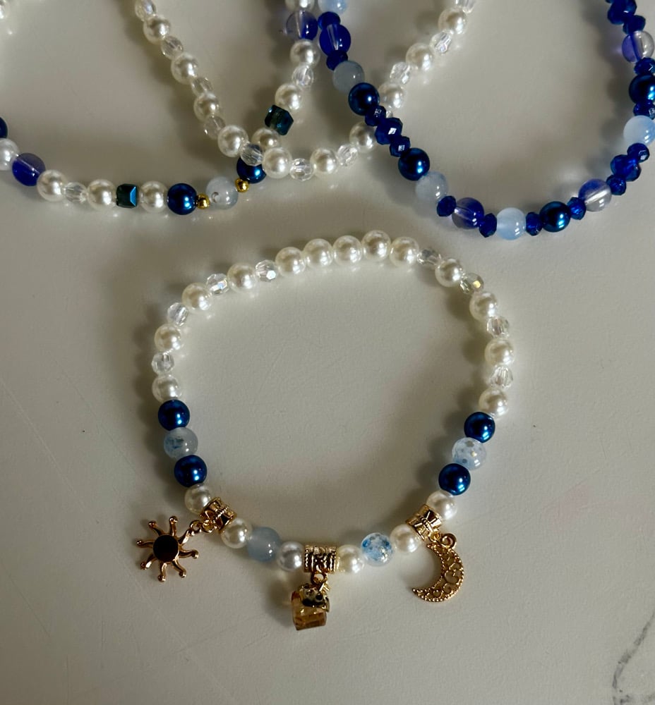 Cream & Blue Celestial Tumbler Bracelet Stack