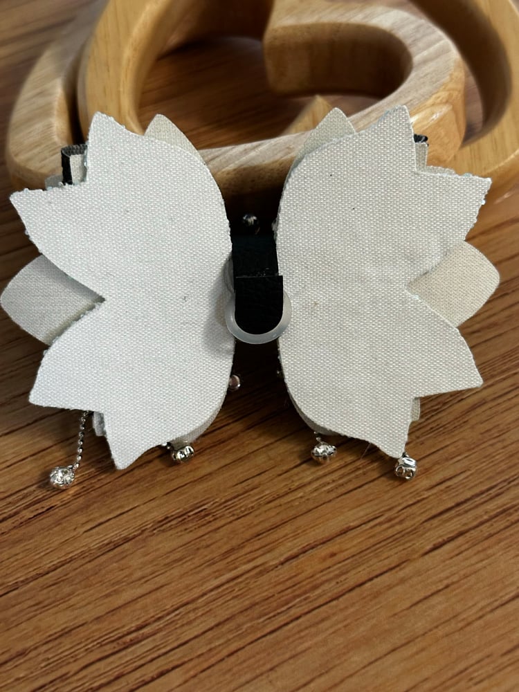 Each bow is handmade, so slight variations may occur. Handle with care to preserve the rhinestone strands and detailing. Not intended for small children.