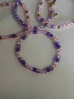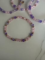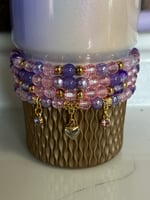 Add a touch of sparkle and enchantment to your favorite tumbler with this Glinda-inspired bracelet stack. Featuring a dreamy blend of shimmering pink, soft lavender, deep purple, and elegant gold accents, this handcrafted set captures the magical, glamorous essence of everyone’s favorite good witch.