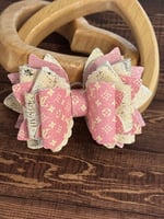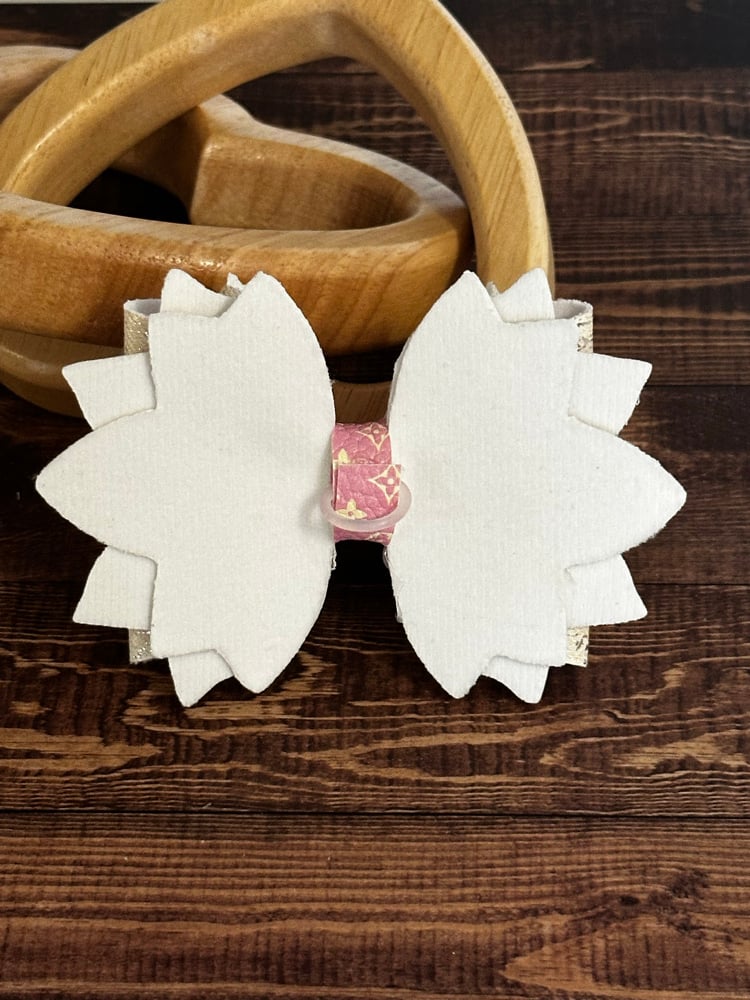 This full, statement version of the pink and cream bow is all about volume and sparkle. Featuring multiple layered loops with soft pink tones, cream accents, and a touch of glitter, it creates a beautifully dimensional look. A must-have if you love a girly, glam vibe that stands out.