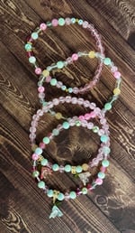Care: Handle gently and avoid excessive stretching or water exposure to preserve the life of the bracelets.