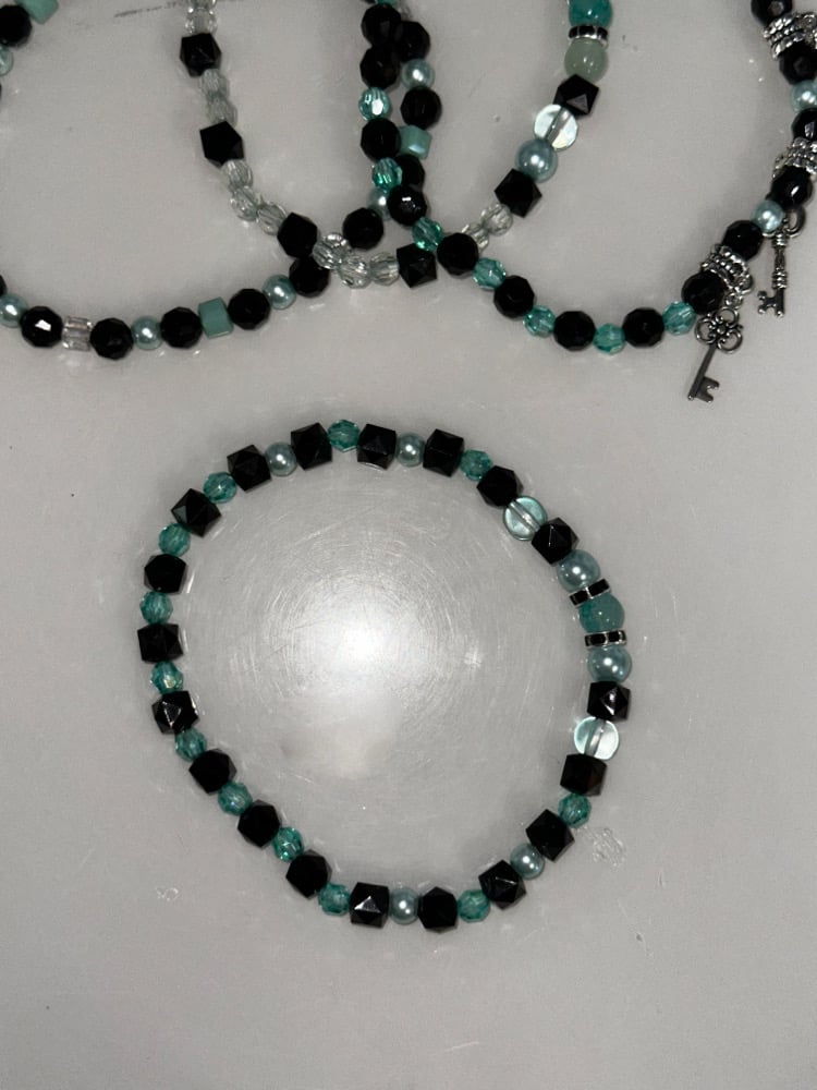 Teal and Black Midnight Glitz’s Tumbler Bracelet Stack