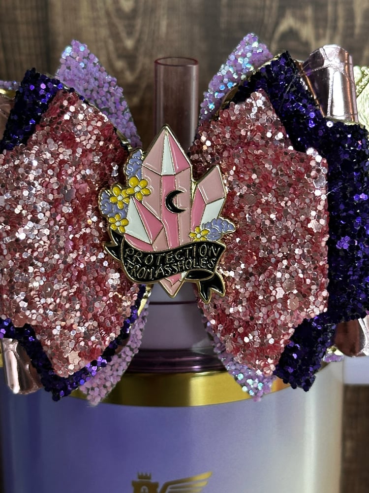 Add a touch of wicked charm to your tumbler with this Stanley-compatible straw topper bow. Designed for a snug fit, it slides easily over most standard tumbler straws and adds a bold finishing detail to your drink setup. Lightweight yet durable, it’s the perfect glam accent for everyday use or seasonal style.